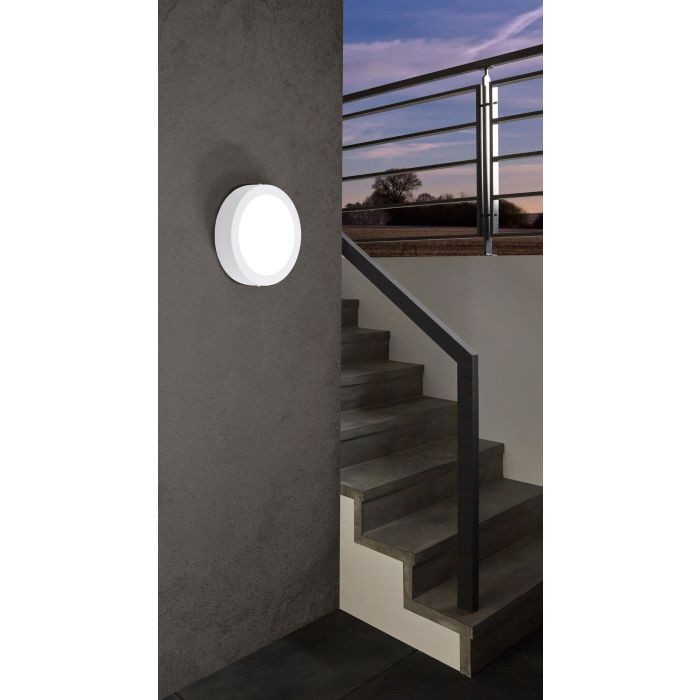 The EGLO ARGOLIS-C wall/ceiling light (model 98171) is an outdoor fixture from the EGLO connect segment, featuring a white cast aluminum enclosure and a white plastic shade. It supports app and remote control functionality with BLE and CCT features. The light is dimmable and offers a tunable white color temperature range of 2700-6500K, providing a total output of 1600 lumens.