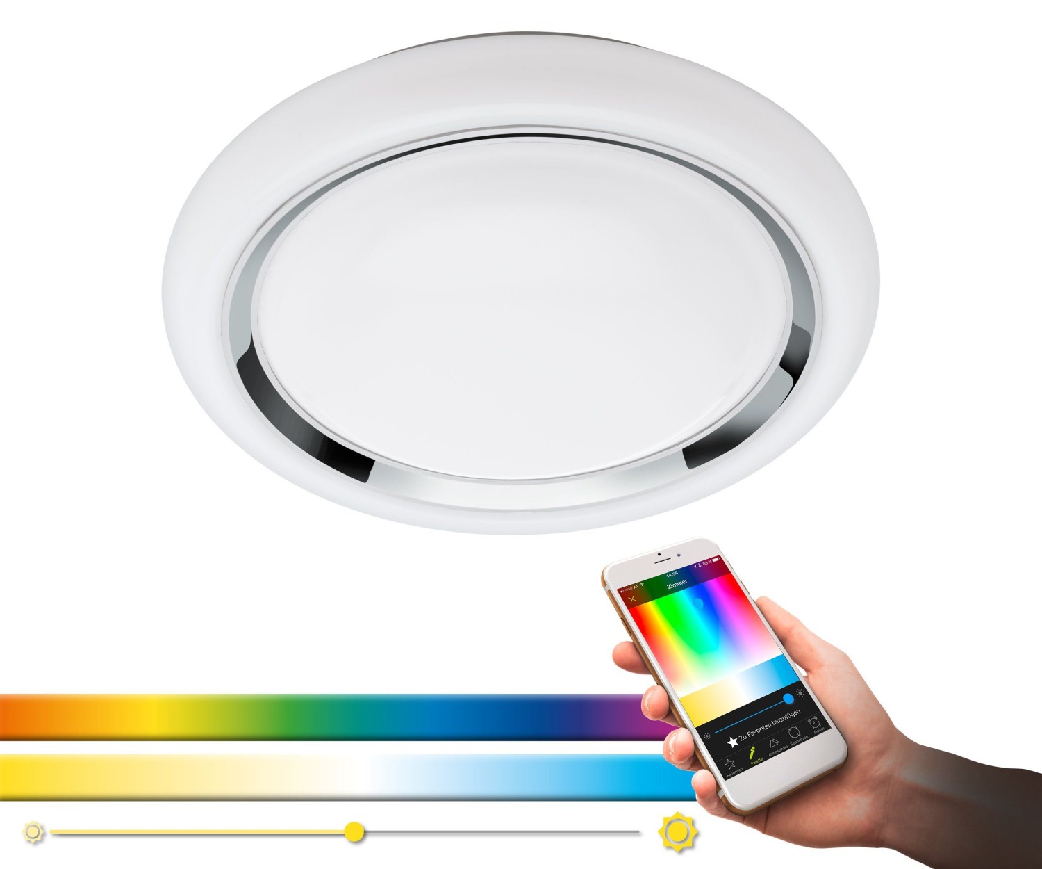 controllable via APP or remote control. With a maximum wattage of 17W, it
