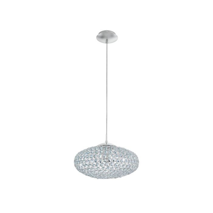 The CLEMENTE pendant light features a chrome-coloured metal ceiling mount with a suspended oval lampshade made from rows of clear crystal-inspired cut glass. The crystal elements create a sparkling, high-quality look once the light is on. The pendant light has a diameter of 35 cm and blends elegantly into modern interiors, creating a desirable ambience in any space, whether in the living room or above the table in the dining room. Lightbulbs are not included. The product has E27 lamp holders and requires 1 x E27 lightbulbs.
