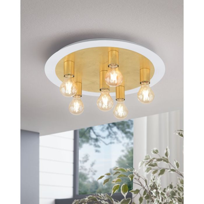 The Passano 97493 LED ceiling light combines a sleek design with functional efficiency, perfect for any living space. Made from steel in white and gold, it features six light sources to provide warm and inviting illumination.