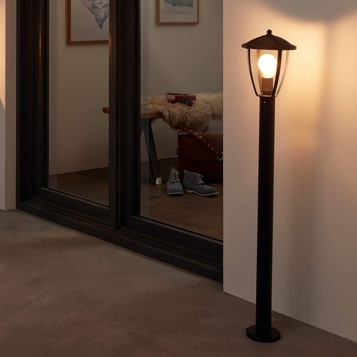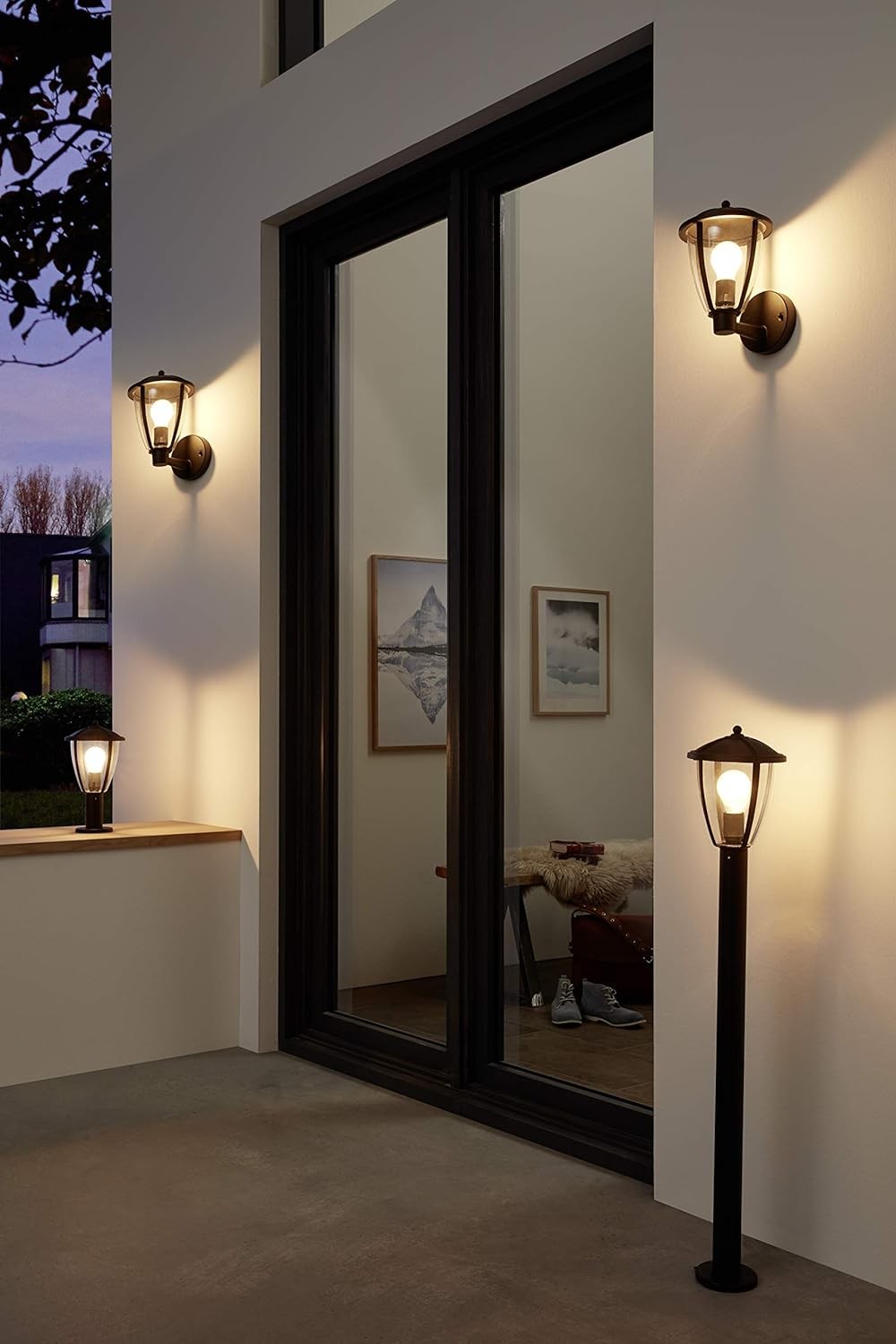 a transparent plastic shade that emits a soft and inviting glow. Its IP44 protection