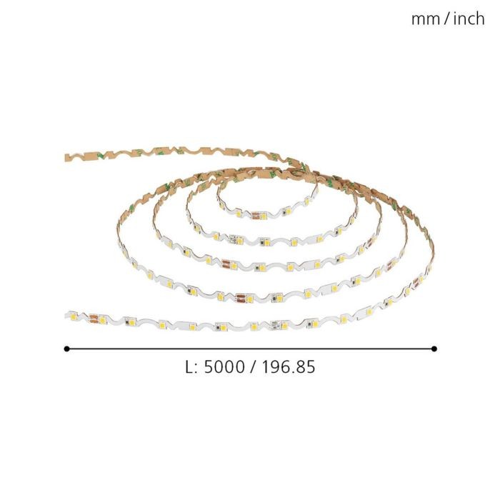 The FLEXIBLE STRIPE bar/strip light (Material number 98572) is designed for indoor use, featuring a sleek white plastic enclosure with dimensions of 6mm in width and 5000mm in length. With a net weight of 0.17kg, this light offers flexible installation options, allowing for shortening if needed. Operating at a mains voltage of 220-240V, 50/60Hz, and an operation voltage of 24V, it provides warm white light at 3000K with 3000 lumens. The light is not dimmable and has a maximum wattage of 27W. The LED technology ensures a long nominal lifetime of 25,000 hours, with a high energy efficiency class of F.
