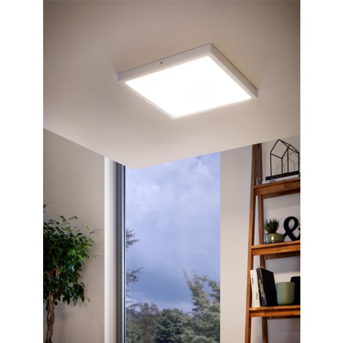 finish, it features a white plastic shade. Measuring 400mm in both width and